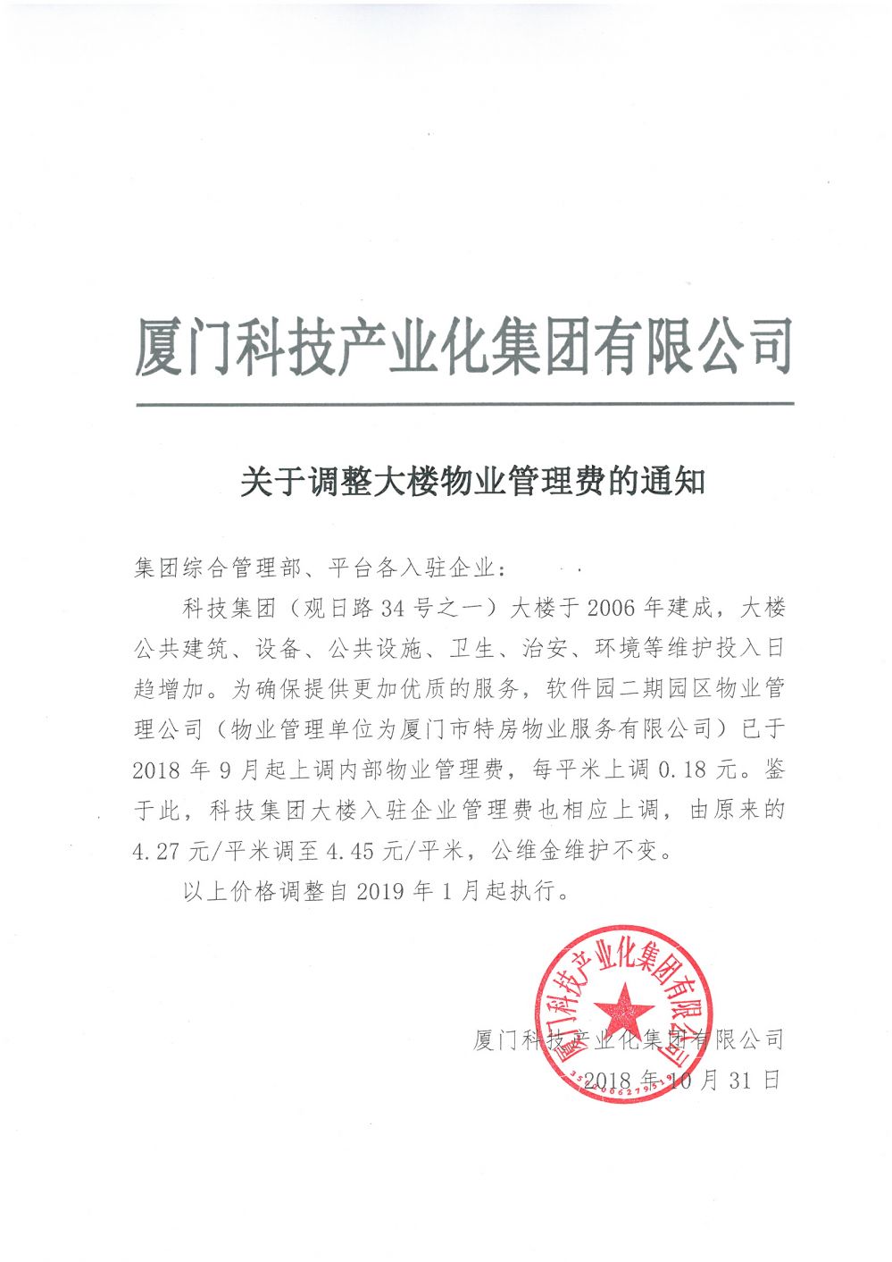 關(guān)于調(diào)整大樓物業(yè)管理費(fèi)的通知