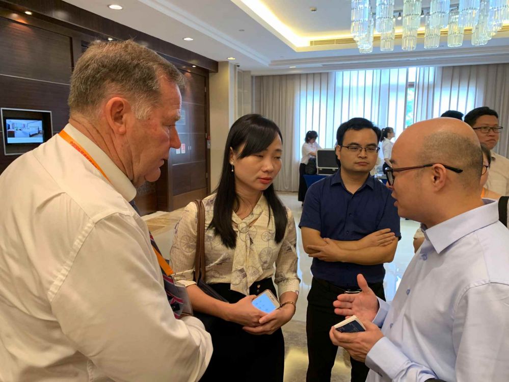 在廈門自貿(mào)片區(qū)推介環(huán)節(jié),科技集團(tuán)IC服務(wù)平臺(tái)主任黃建寶做了題為“自貿(mào)創(chuàng)‘芯’——集成電路雙創(chuàng)平臺(tái)”精彩的主題演講,從產(chǎn)業(yè)環(huán)境、流片保稅試點(diǎn)、平臺(tái)建設(shè)、配套政策等四個(gè)方面進(jìn)行推介。會(huì)后,澳大利亞籍客商專程與黃建寶主任交流了業(yè)務(wù)合作事宜,探討在半導(dǎo)體產(chǎn)業(yè)鏈開展有效合作。
