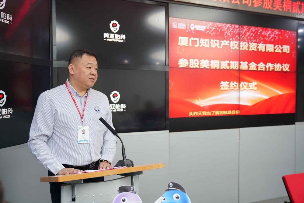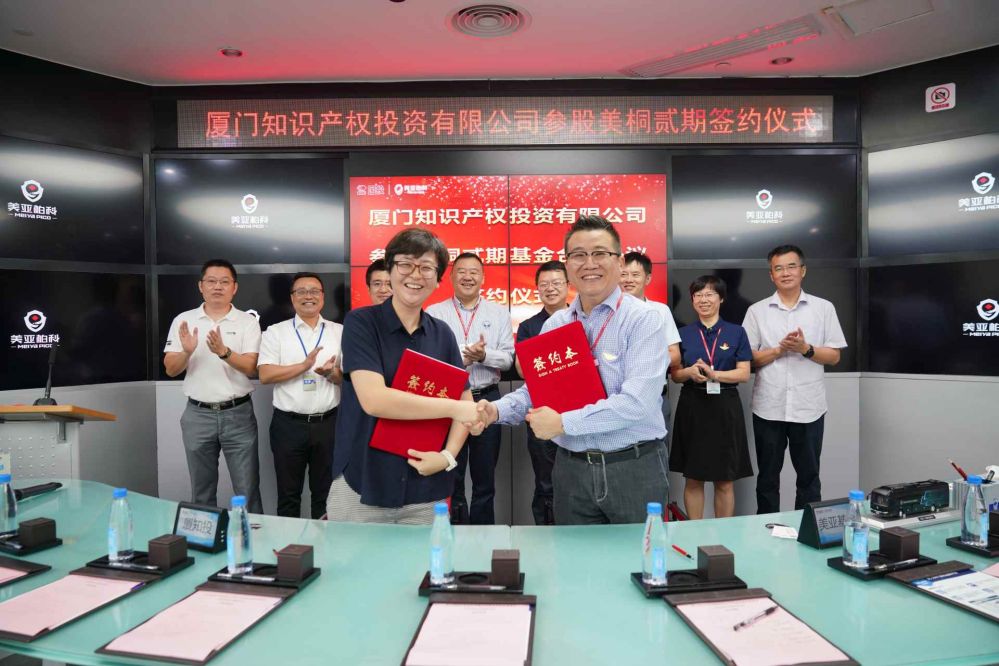 2020年9月9日,廈門知識(shí)產(chǎn)權(quán)投資有限公司參股美桐貳期基金簽約儀式在美亞柏科總部大樓舉辦。廈門市市場監(jiān)督管理局黨組成員、二級巡視員盧琳兵、國投智能戰(zhàn)略投資部總經(jīng)理涂崢、美亞柏科董事長滕達(dá)出席儀式并致辭。科技集團(tuán)黨總支書記、董事長謝勇堅(jiān),美亞柏科黨委書記、總裁申強(qiáng)、美亞柏科執(zhí)行總裁欒江霞、美亞基金總經(jīng)理孫萬營、廈門市市場監(jiān)督管理局(知識(shí)產(chǎn)權(quán)局)知識(shí)產(chǎn)權(quán)運(yùn)用促進(jìn)處負(fù)責(zé)人郭永明、知識(shí)產(chǎn)權(quán)運(yùn)用促進(jìn)處二級調(diào)研員林志堅(jiān)、知識(shí)產(chǎn)權(quán)投資公司副總經(jīng)理張?bào)薜瘸鱿⒁娮C簽字儀式。