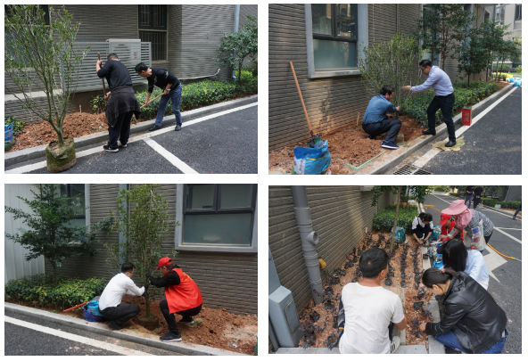集團(tuán)干部職工三五人一組相互配合,分工協(xié)作,掄鋤挖坑、扶直樹苗、揮鍬培土;花圃挖坑種花,鋪平草皮,踩實(shí)壓緊,配合默契而有序。大家栽得認(rèn)真,干得賣力,顧不上汗水打濕衣裳,也顧不上泥濘裹滿了鞋履。經(jīng)過(guò)1個(gè)多小時(shí)的努力,綠化樹種在大家的齊心協(xié)力下栽種完成。