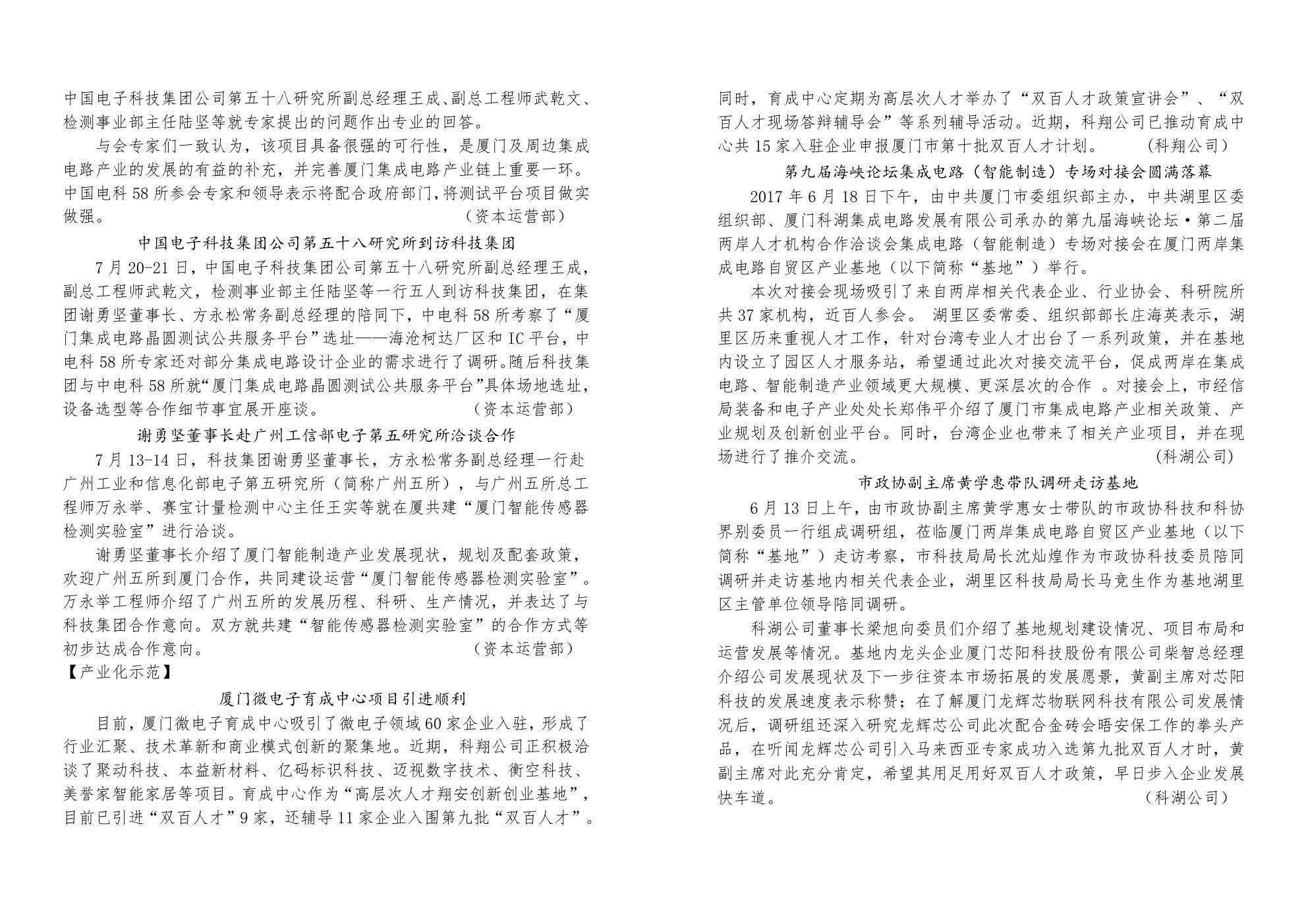 產(chǎn)業(yè)化公司工作簡(jiǎn)報(bào)第6期(總第16期) 欄目:集團(tuán)資訊 來(lái)源:廈門科技產(chǎn)業(yè)化集團(tuán) 時(shí)間:2017-09-28 熱度:175