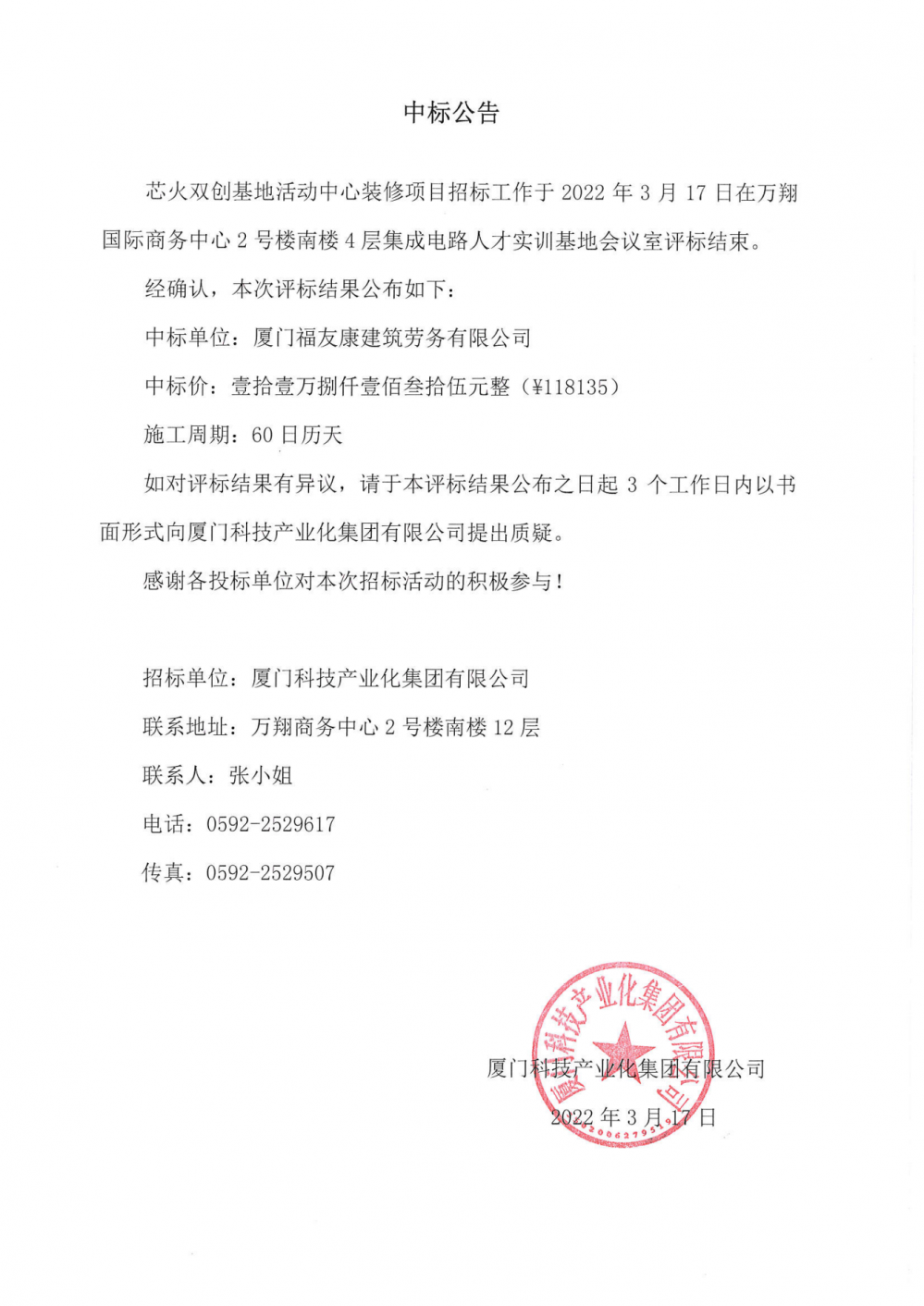 招標(biāo)公告(芯火雙創(chuàng)基地活動中心)