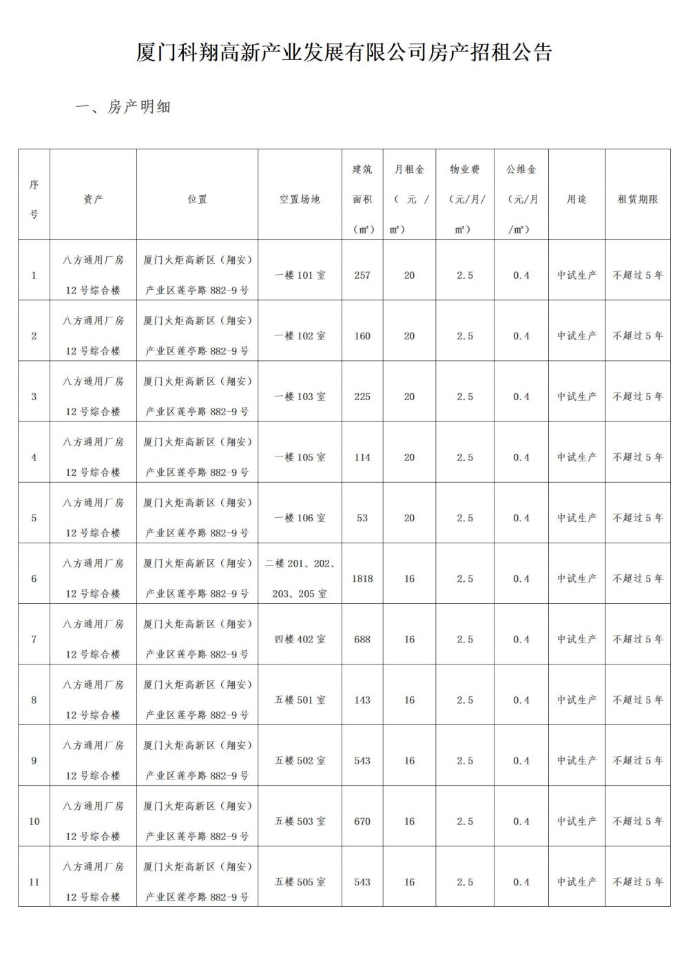 廈門科翔高新產(chǎn)業(yè)發(fā)展有限公司房產(chǎn)招租公告