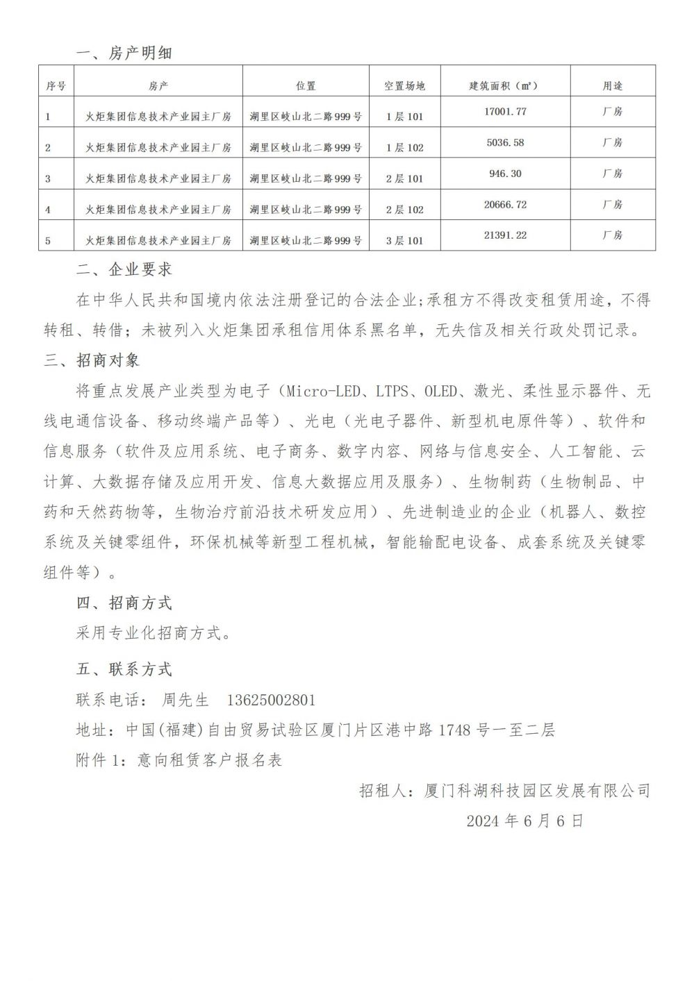 廈門科湖科技園區(qū)發(fā)展有限公司房產(chǎn)招租公告 欄目:通知公告 來源:廈門科技產(chǎn)業(yè)化集團 時間:2024-06-07 熱度:106 廈門科湖招租公告 2024.06.06.doc