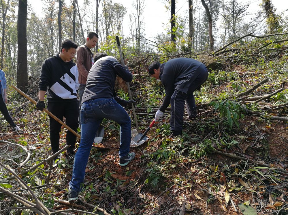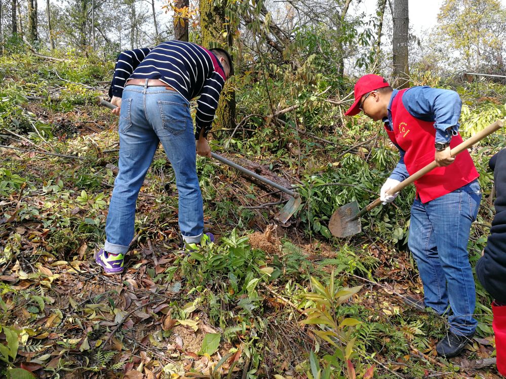 由于近日來的綿綿陰雨,使坂頭林場(chǎng)原本坑洼不平的山地更加泥濘,但這絲毫沒有阻擋干部職工的植綠添綠熱情,幾人一組,分工協(xié)作,掄鋤挖坑、扶直樹苗、揮鍬培土、踩實(shí)壓緊,配合默契而有序。大家栽得認(rèn)真,干得賣力,顧不上汗水打濕衣裳,也顧不上泥濘裹滿了鞋履。經(jīng)過近兩個(gè)小時(shí)的辛勤勞動(dòng),75株木荷樹苗迎風(fēng)而立。